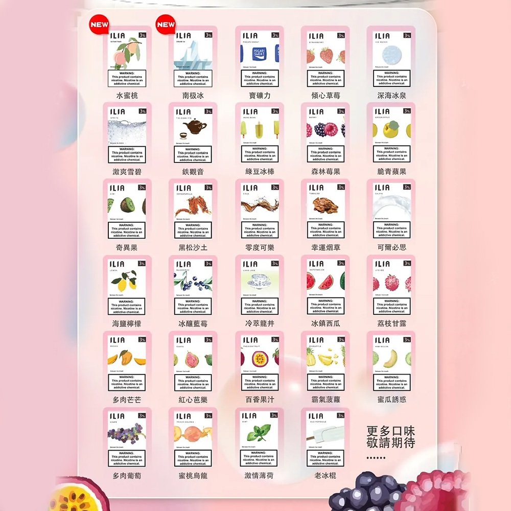 ILIA煙彈尼古丁含量3%,暢享純正口感。