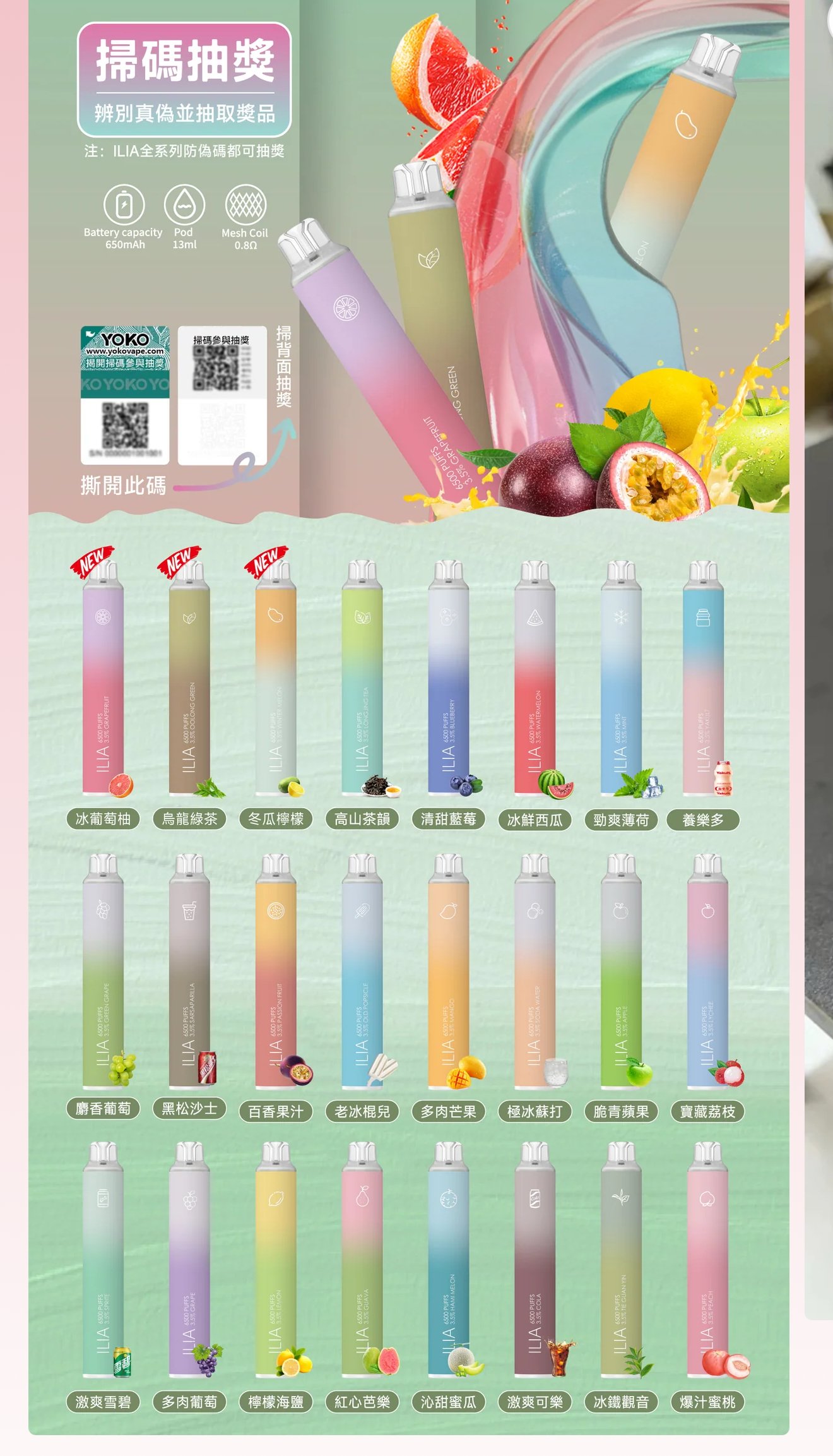 第一次下單的客戶下單后請主動添加客服LINE 提供訂單編碼或都姓名確認訂單 下單后包裹約2-3天左右到達門市 ILIA哩亞四代Bar4拋棄式電子煙 6500口