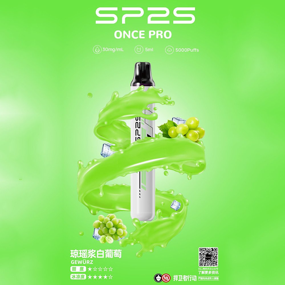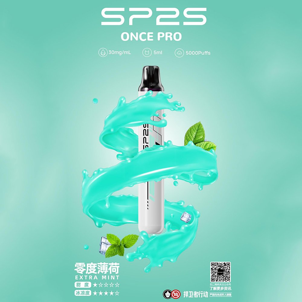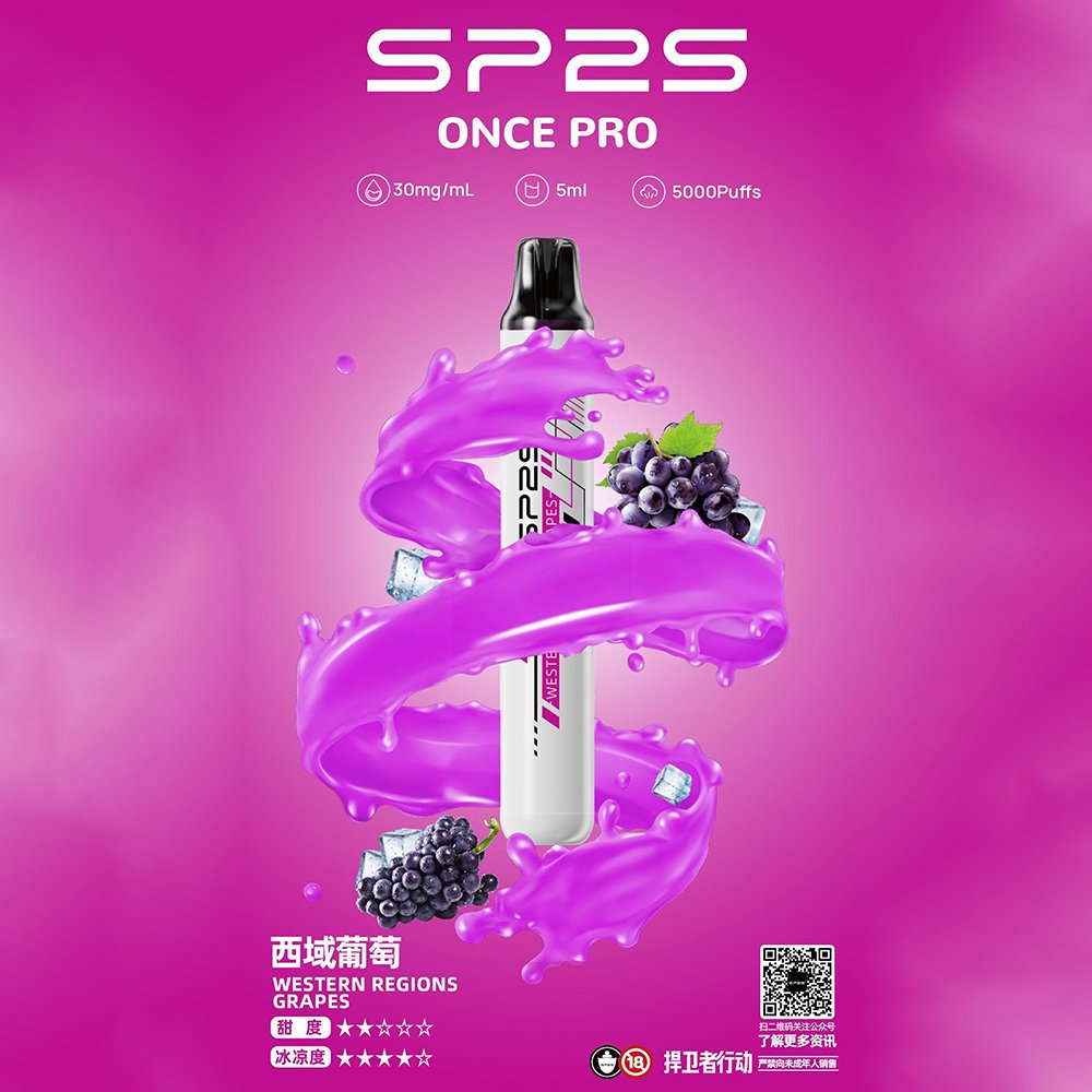 SP2S ONCE PRO 5000口一次性電子菸,搭載 5ml 大容量煙油與高效電池,提供長達 5000 口的持久續航。免充電、免注油設計,開封即用,这款SP2S電子煙輕巧便攜的流線型外觀兼具時尚與舒適握感,讓您隨時隨地享受高品質吸煙體驗。